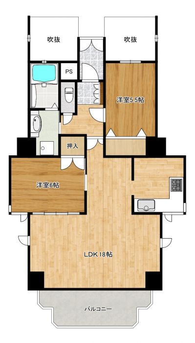 2LDK 洋室6帖/洋室5.5帖/LDK18帖