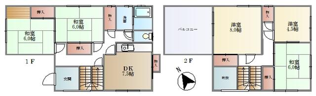 5DK 和室6帖/和室6帖/和室6帖/洋室8帖/洋室4.5帖/DK7.5帖