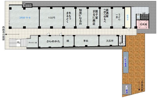 駅前ベーカリー・中華・募集中! 西鉄春日原駅西側出口を出ると眼の前で利便性大です。駅前ベーカリー駅前中華・事務所・店舗募集中!